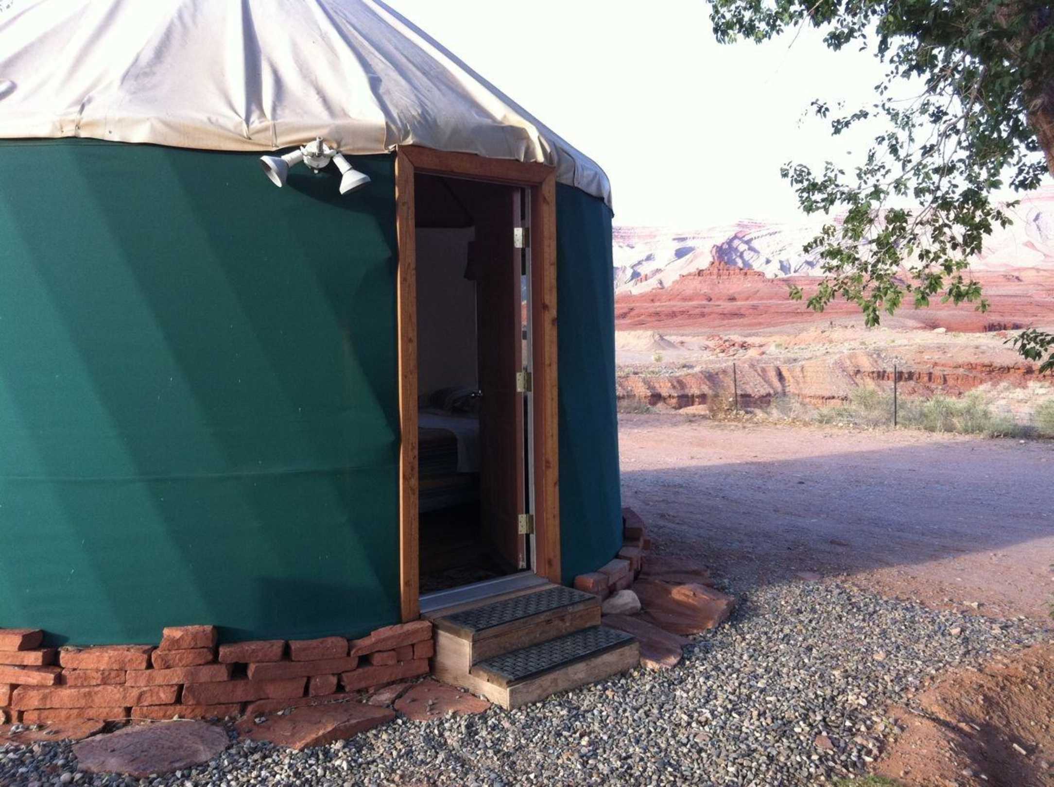 Hotel San Juan Inn & Trading PostMal was ganz anderes. Eine Jurte mit Blick auf den Mexikan Hat, den Fluss und den Sternenhimmel über dem Bett