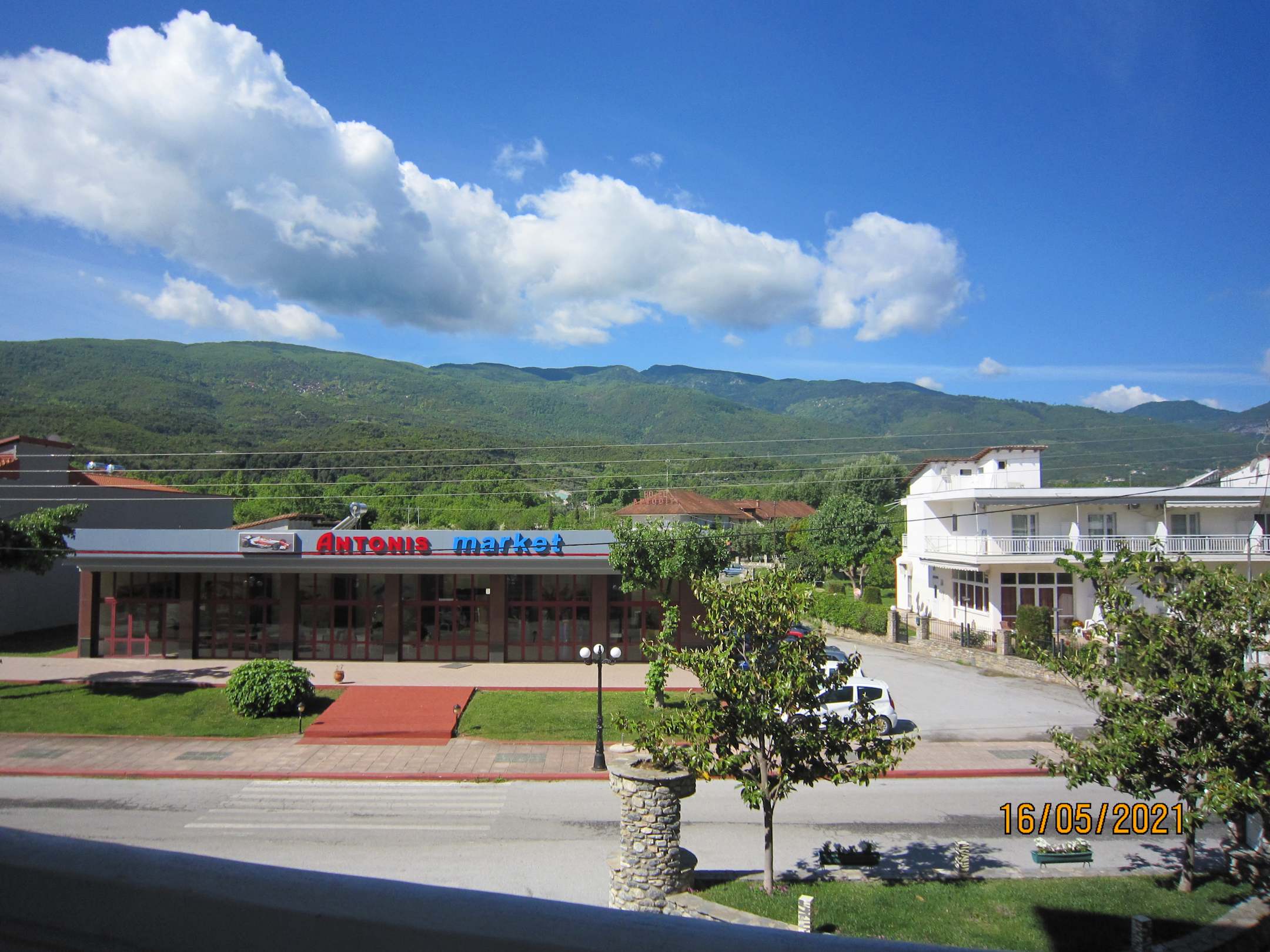 Ausblickvom Haupteingang in die Berge, der Bereich gegenüber gehört auch zum Hotel, dort waren u.a. >100 Jugendliche