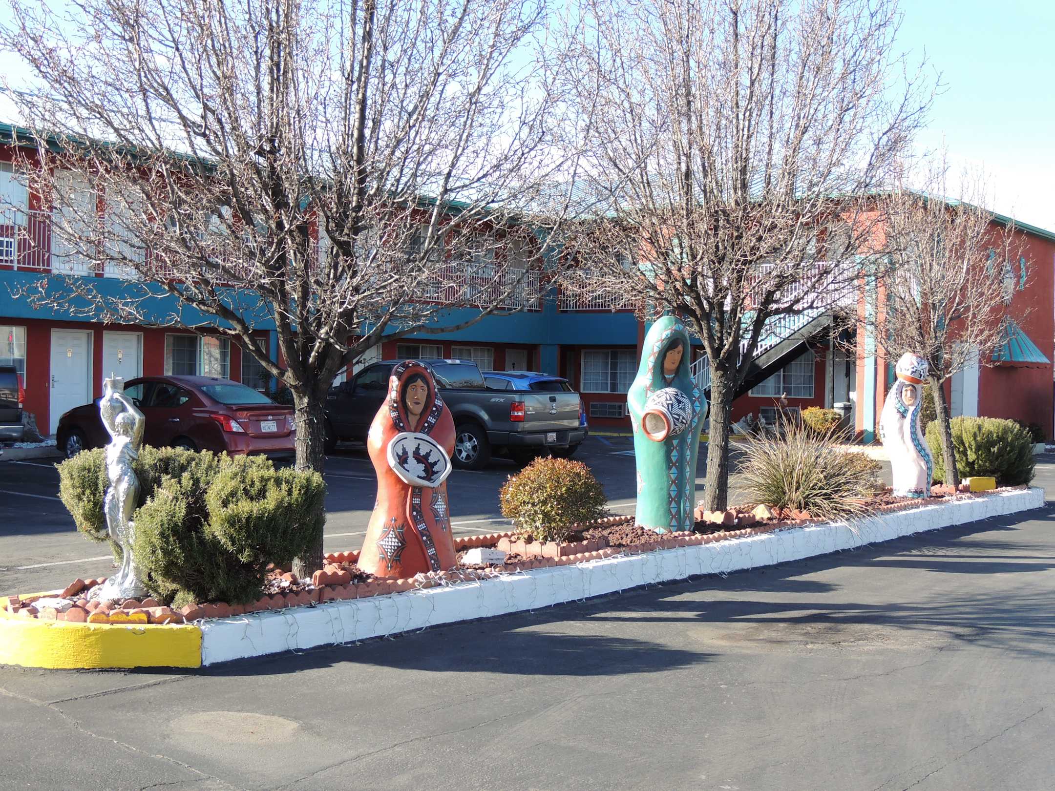 Auf dem Parkplatz gibt es einige mexikanisch anmutende Skulpturen
