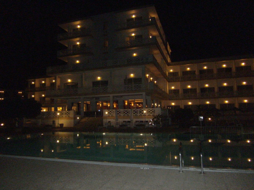 Hotel von der Strandpromenade aus bei Nacht