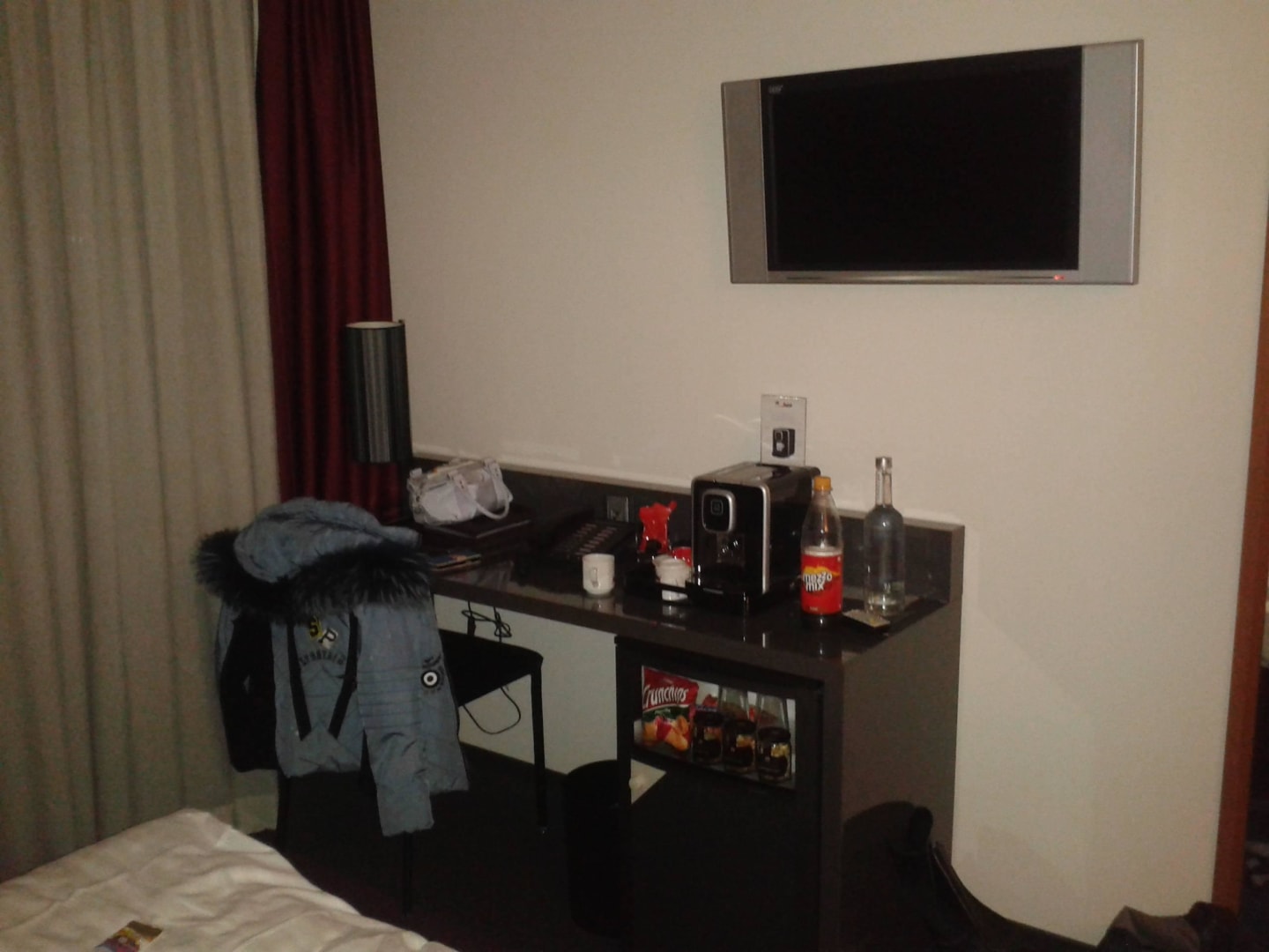 Schreibtisch,Minibar, billiger Fernseher