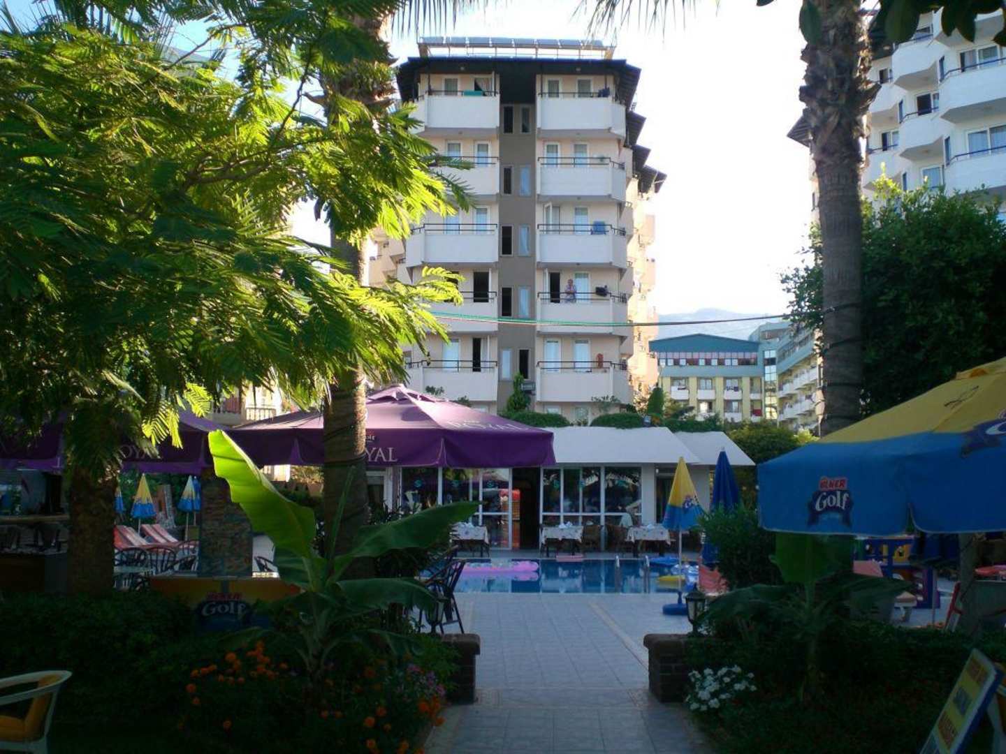 Blick und Weg vom Strand zum Hotel