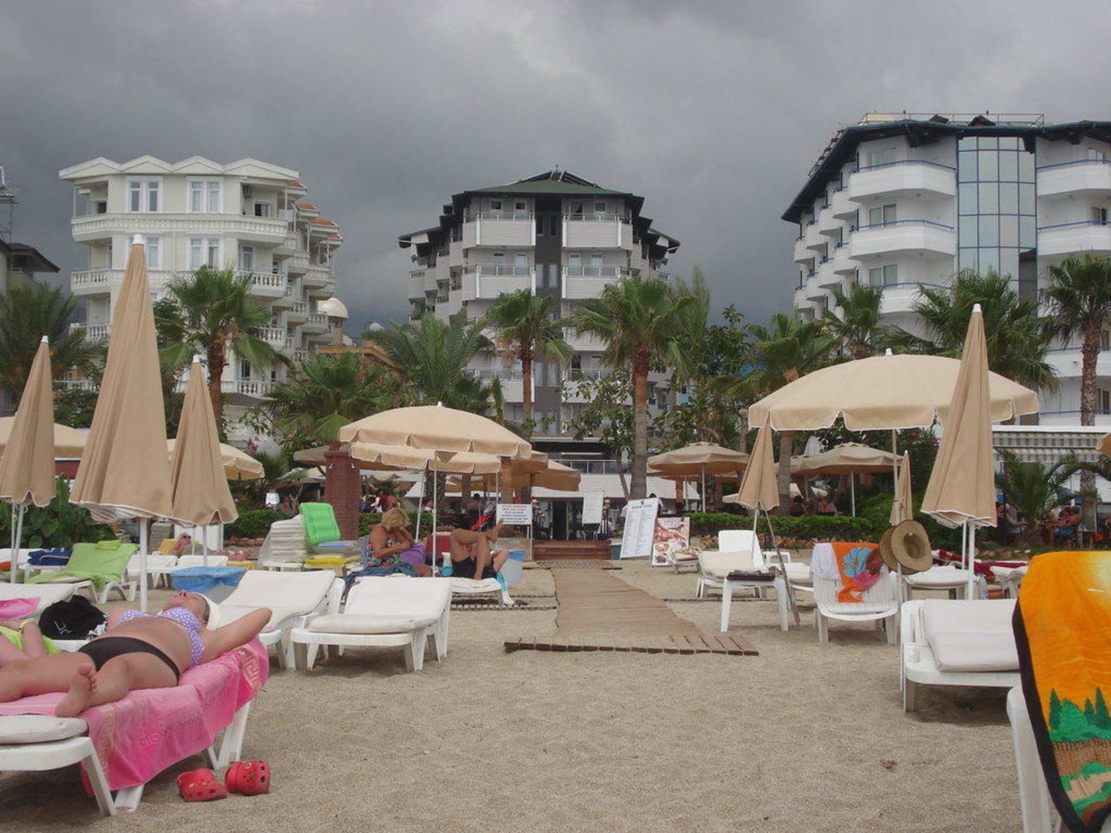 Blick vom Strand auf das Hotel