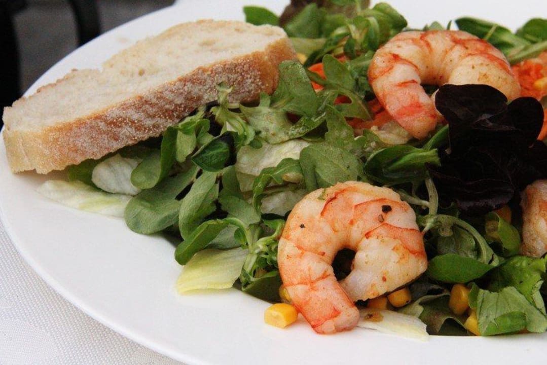 Salat mit gebratenen Knoblauch Garnelen