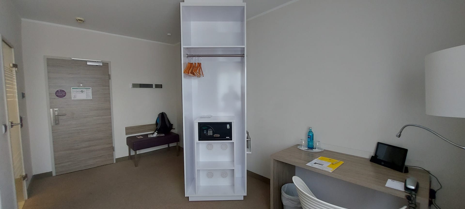 Das ist die drehbare Kleidersäule mit Safe Kühlschrank und TV.