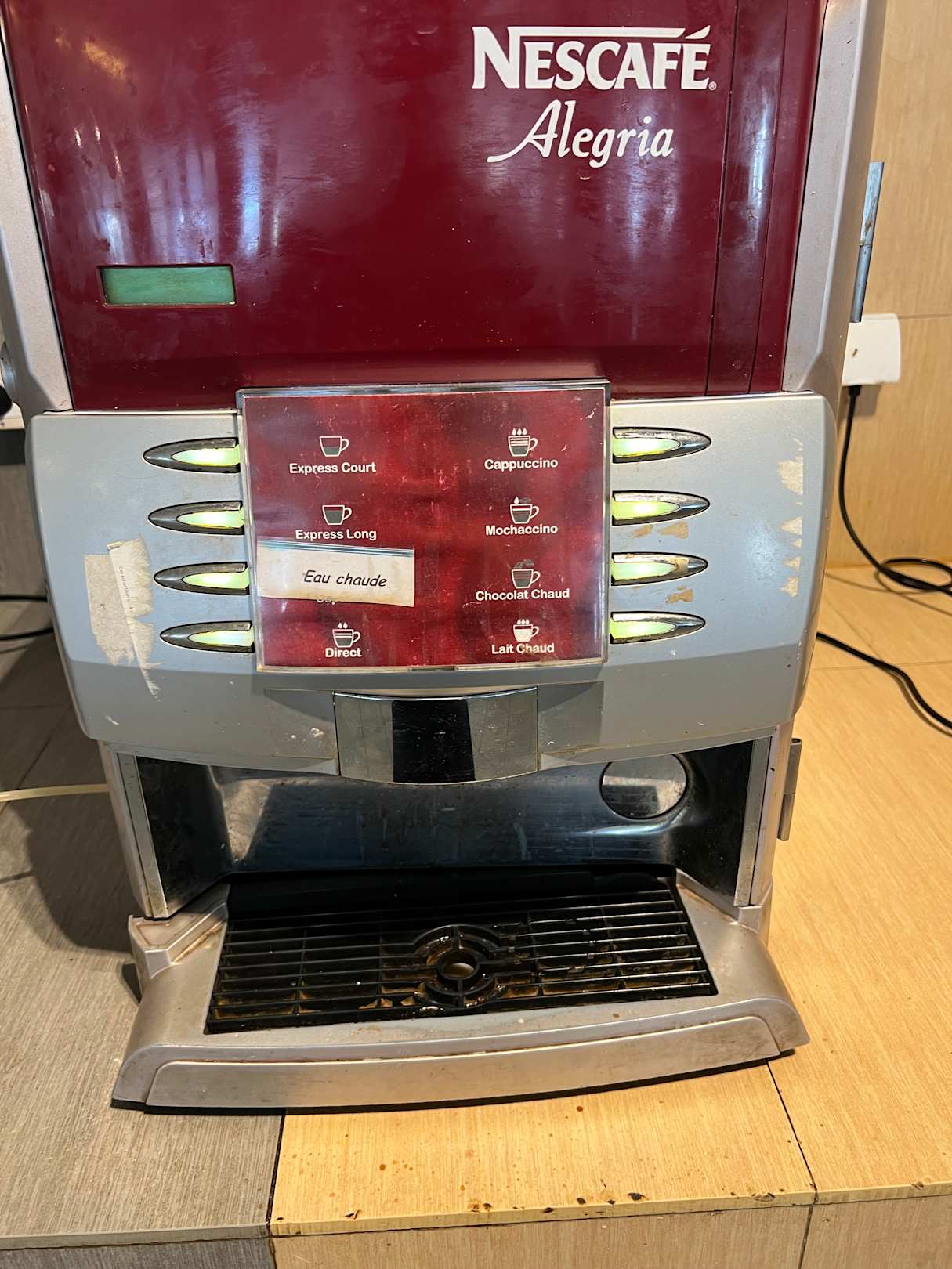 Kaffeemaschine morgens beim Frühstück vollkommen verschmiert und voller Reste