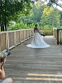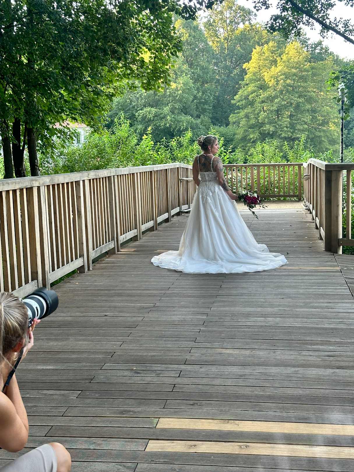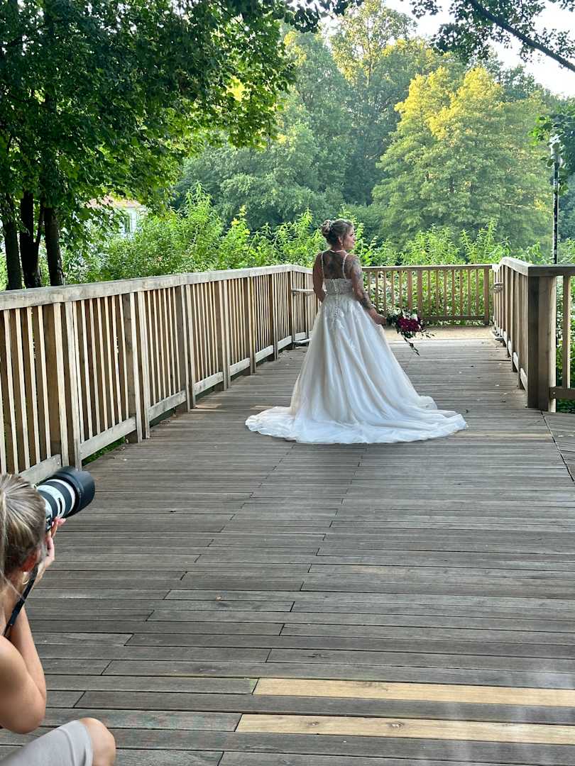 AußenansichtFotoshootings auf der Brücke am Bötzsee neben dem Seeschloss , Hochzeitsfotos am Wasser, heiraten am See , Trauung im Standesamt