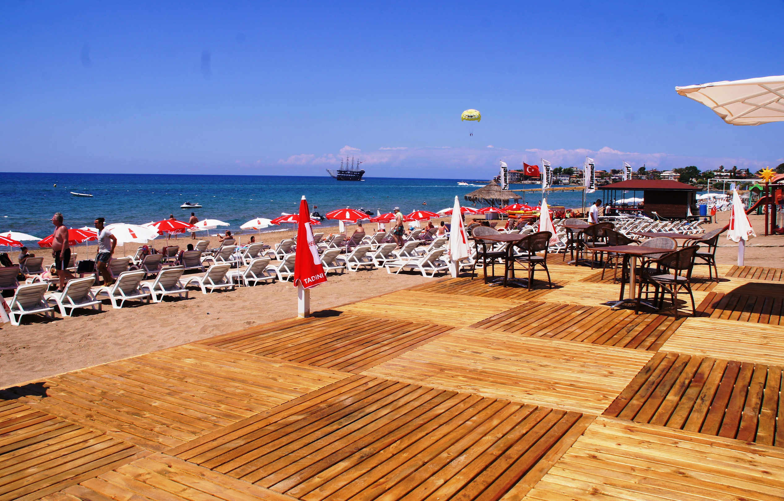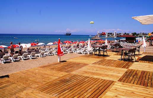 Der neue hotzeleigener Strand - Getränke sind nicht teurer als im Hotel und sind nicht Pflicht. Kostenlose Liegen und Sonnenschirme in gutem Zustand.