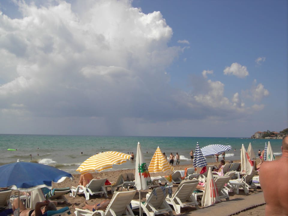 Der Sand setzt sich vom Strand aus ins Meer fort und man benötigt keine Badeschuhe. Der Transfer zum Strand ist bei 50 Grad im Bus jenseits des Guten und eine Zumutung.