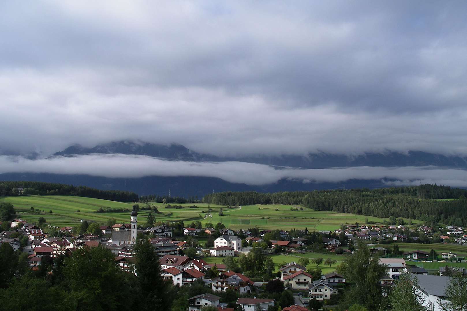 Blick auf den Nachbarort Natters nachdem es nachts gewittert hatte