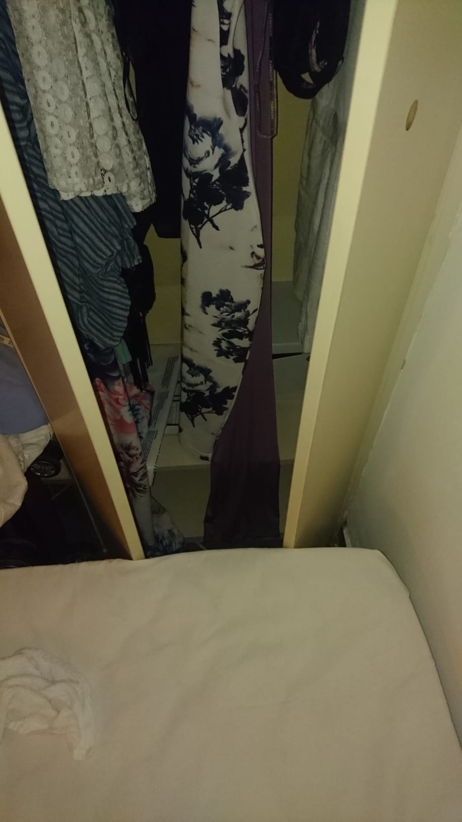 Kleiderschrank kann man nicht aufmachen, das Bett steht davor!