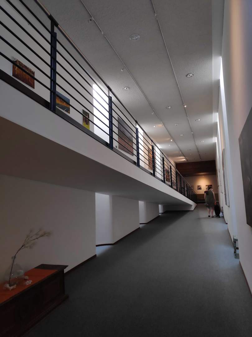 Innenbereich, Gang mit ausgestellten Fotografien.