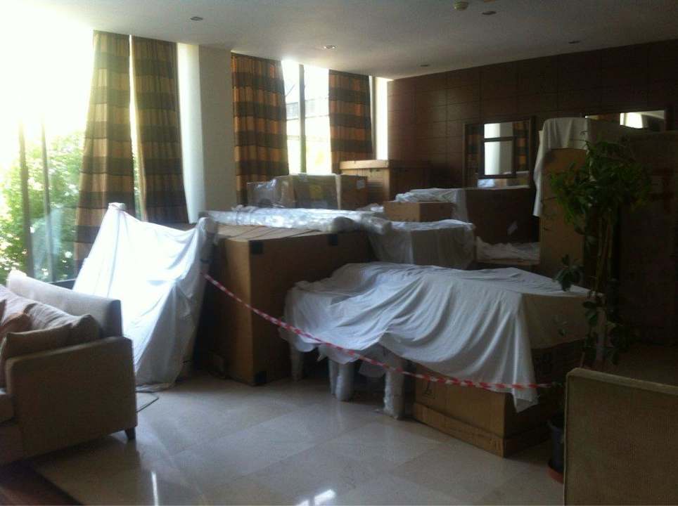 Lobby oder Abstellraum?Lobbybar war vollgemüllt mit Kartons und alten Möbeln.