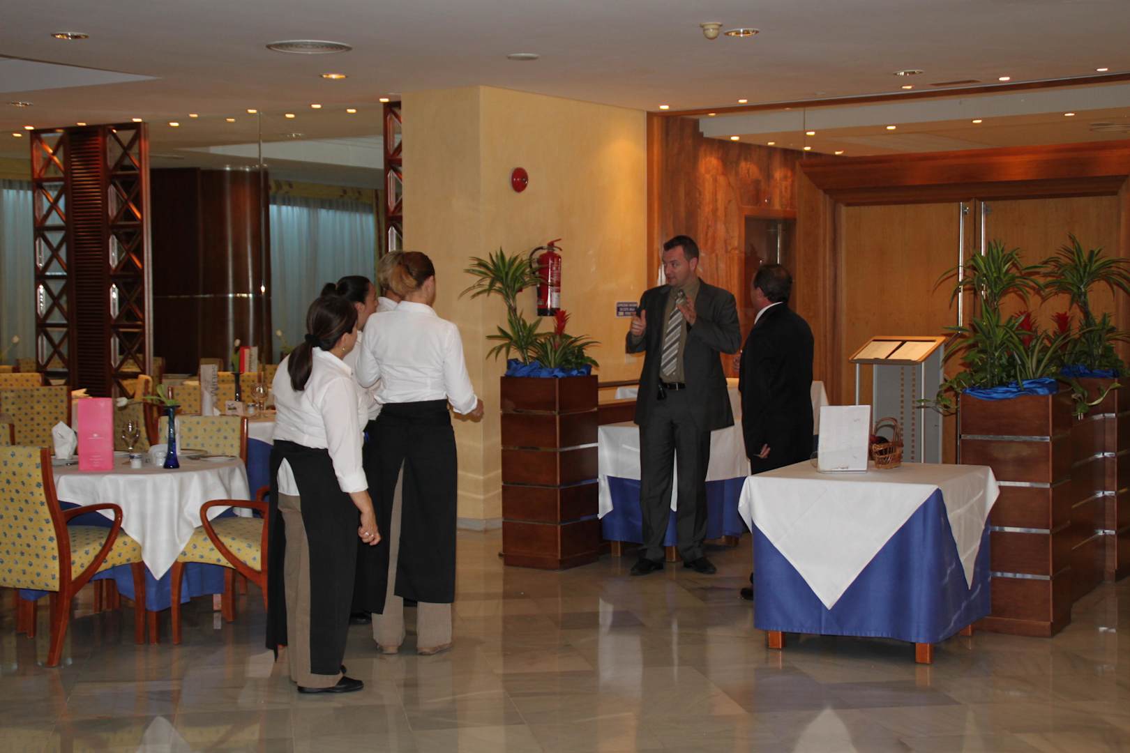 Personaleinweisung durch den Hoteldirektor Herr Schilling und Oberkellner Paco.