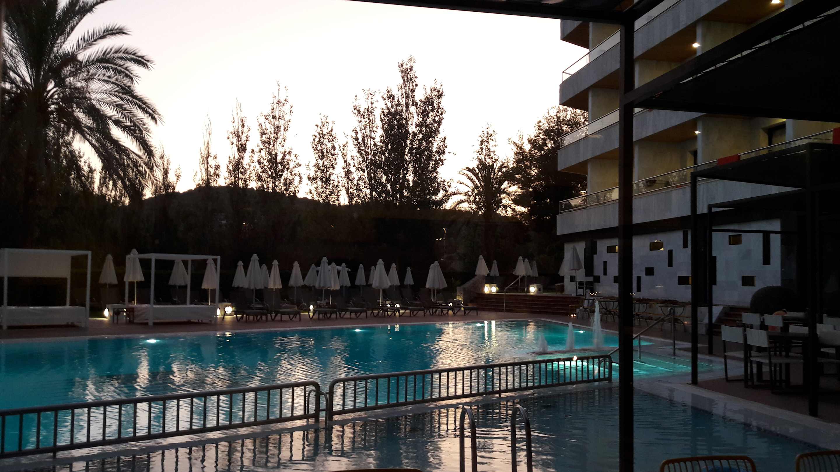 Beim Abendessen mit Blick auf Pool