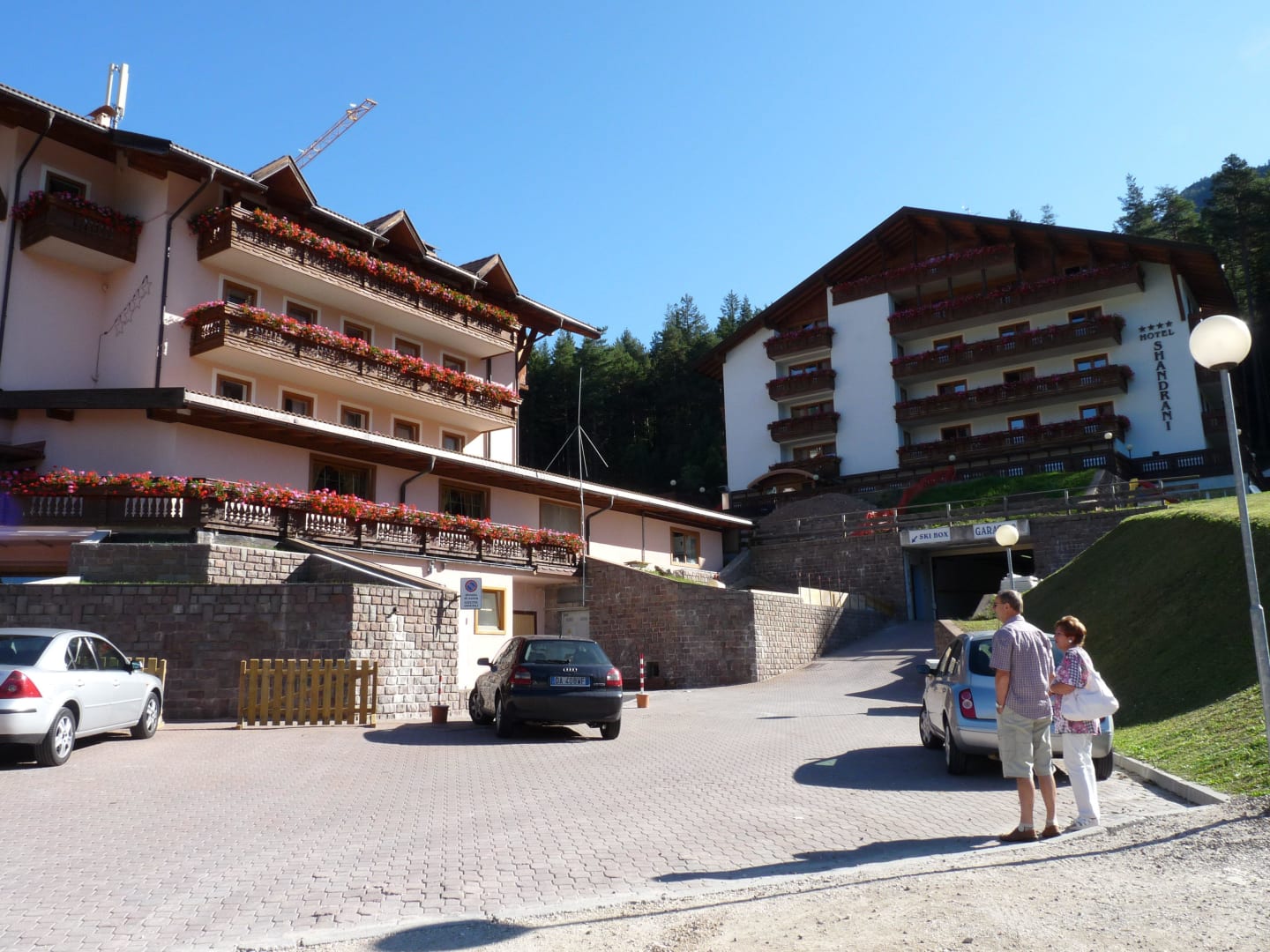 Hotelkomplex besteht aus zwei Häusern, die durch einen Tunnel miteinander verbunden sind.