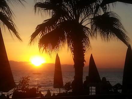 Sonnenuntergang an der Hotelstrandbar
