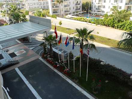 Ausblick zur Straße und Haupteingang