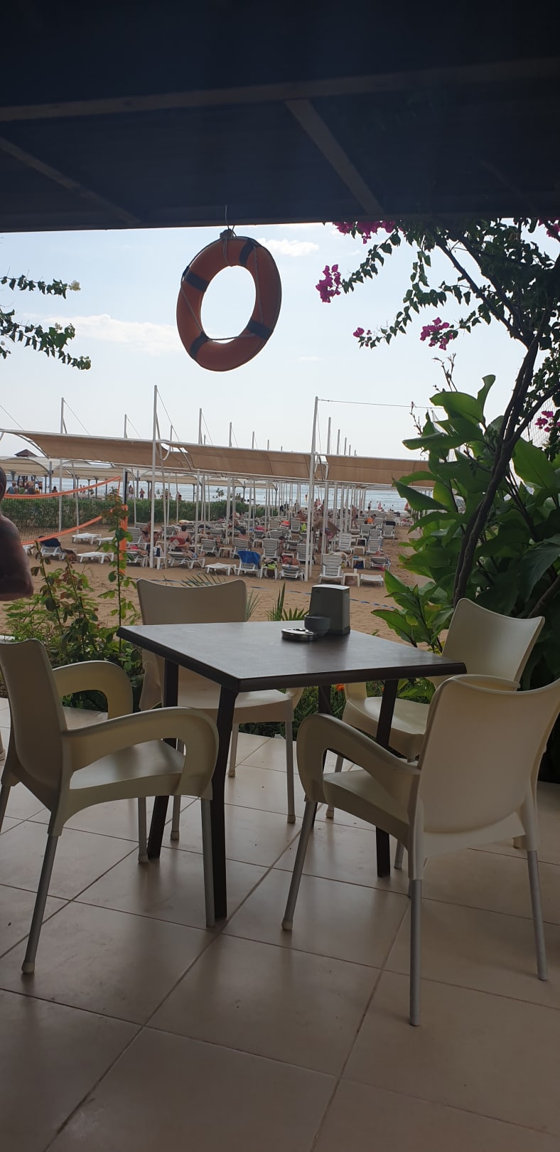 Ja das ist das Strandhaus und Restaurant 17 Tische für alle Gäste Essen ist nicht wirklich möglich weil es schonn besetzt ist um 11 Uhr 30 und bei der Anzahl Tische kann sich jeder überlegen wann es einen Tisch frei ist guten Appetit