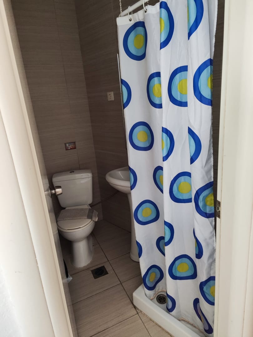 Badezimmer, mit Duschvorhang der gerne mit einem kuschelt