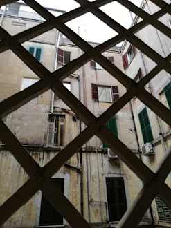 Blick in den Innenhof aus dem Zimmerfenster