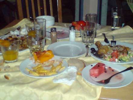 Bombe eingeschlagenJa, das gibt es. Als gäbe es kein Morgen mehr. Die Augen größer als der Magen und der Verstand. Angepickt und liegen gelassen. Und, es sind keine Gäste aus Westeuropa gewesen. Eine Verschwendung und kein bisschen Schamgefühl beim verlassen.