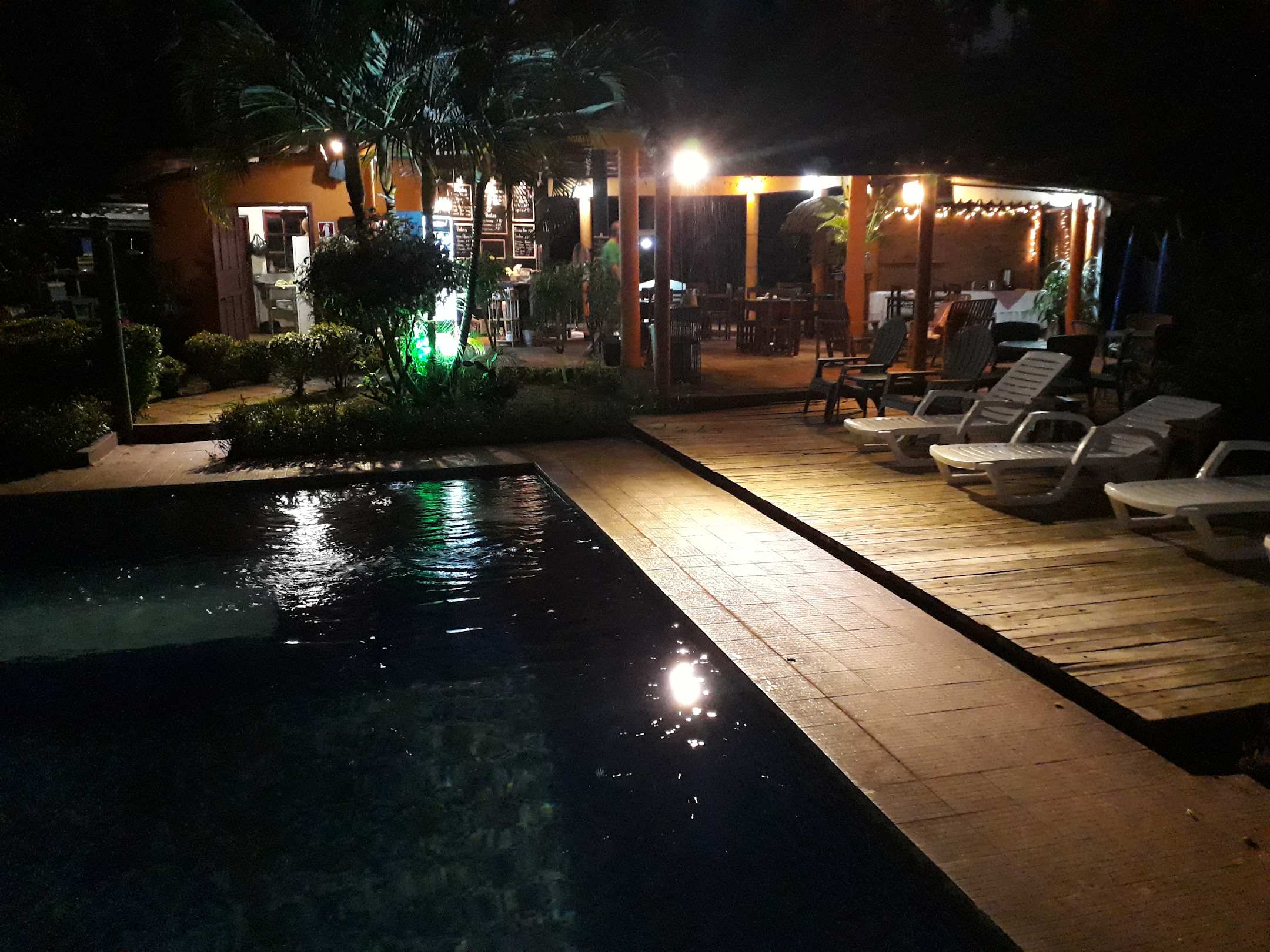 Restaurant und Pool in der Nacht