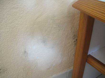 Schimmel an der Wand neben dem Bett