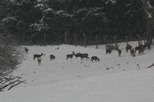 Rotwildhat man ein Zimmer zur Bergseite, hat man einen wunderschönen Blick auf die Rehe, die zum Hotel gehören und zweimal täglich gefüttert werden