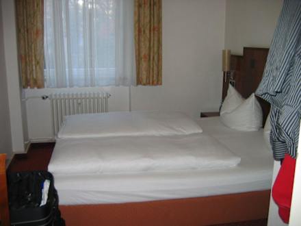 Blick auf das Bett in Zimmer 202