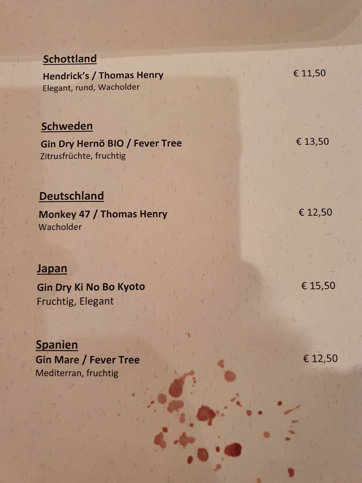 Umfangreiche Ginkarte