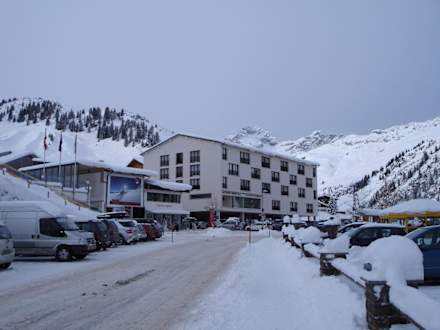 Hotel und unmittelbar links daneben der Skilift