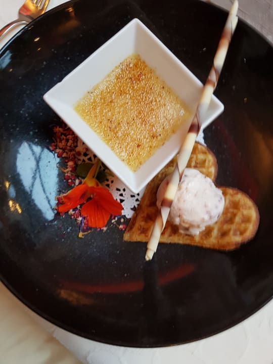 Zirbenmenü Dessert (Creme Brülle mit Zirbeneis...)