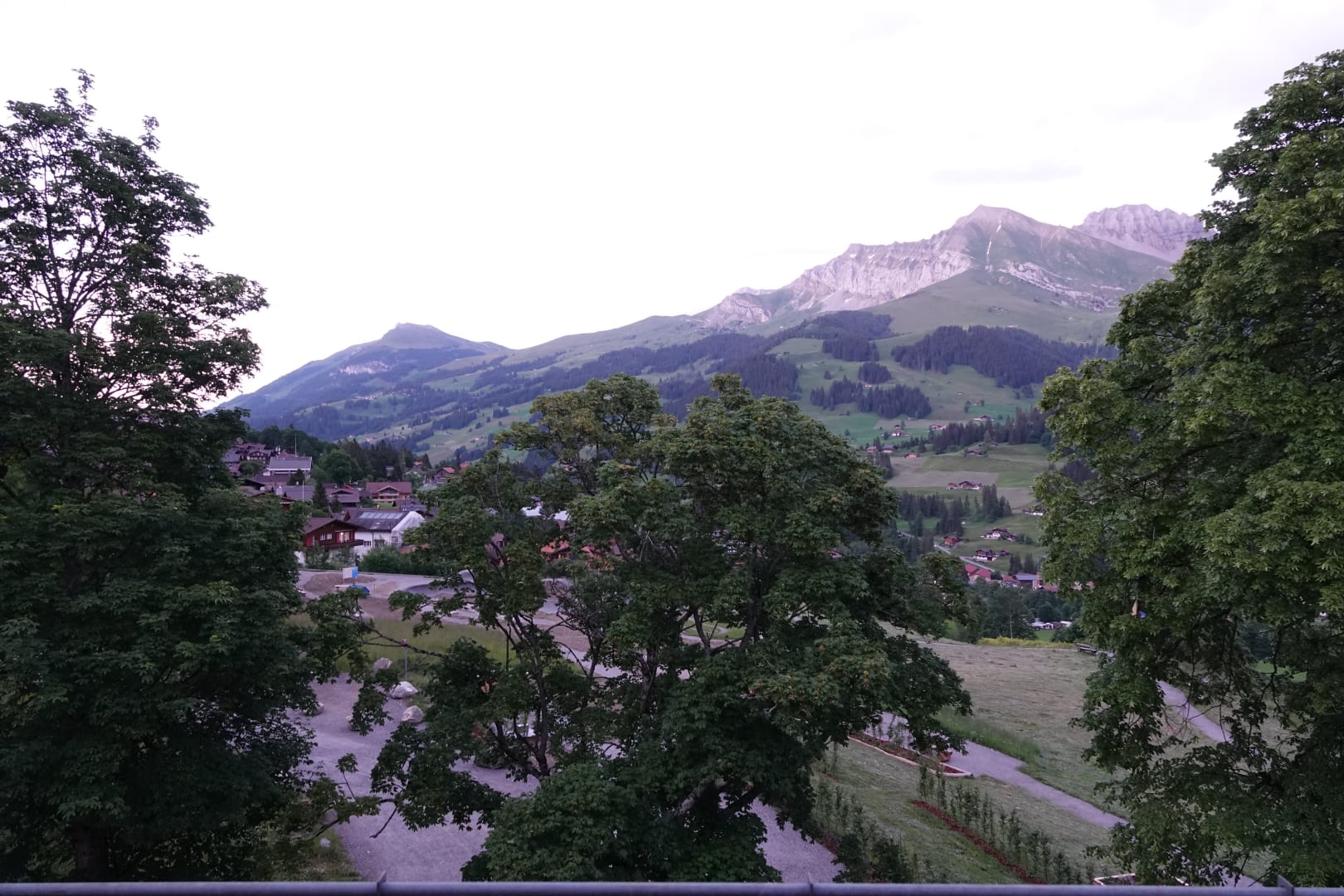 AusblickRechts unten einen der Grillplätze mit Gewürz zur freien Bedienung, links (hinter dem Baum) die Velo-Sprunganlage