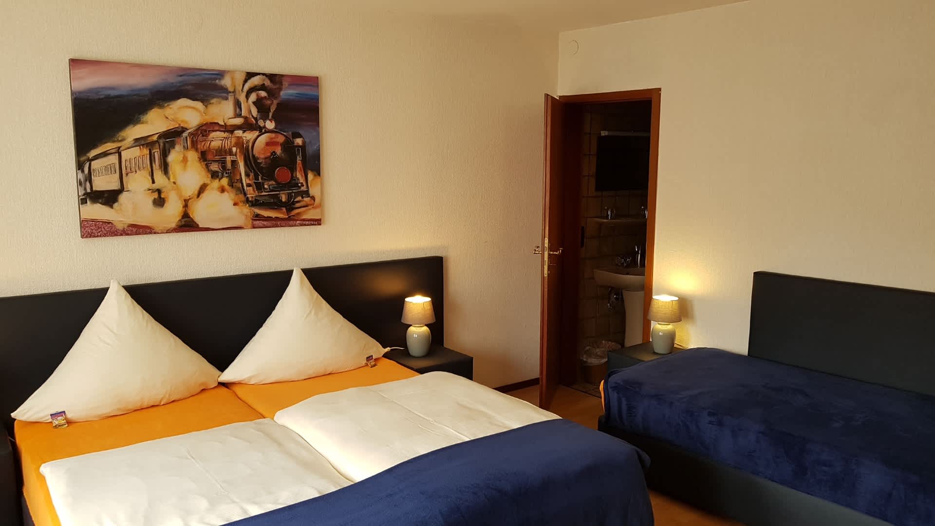 3-Bett-Zimmer ohne Dusche (mit Waschbecken und Toilette).