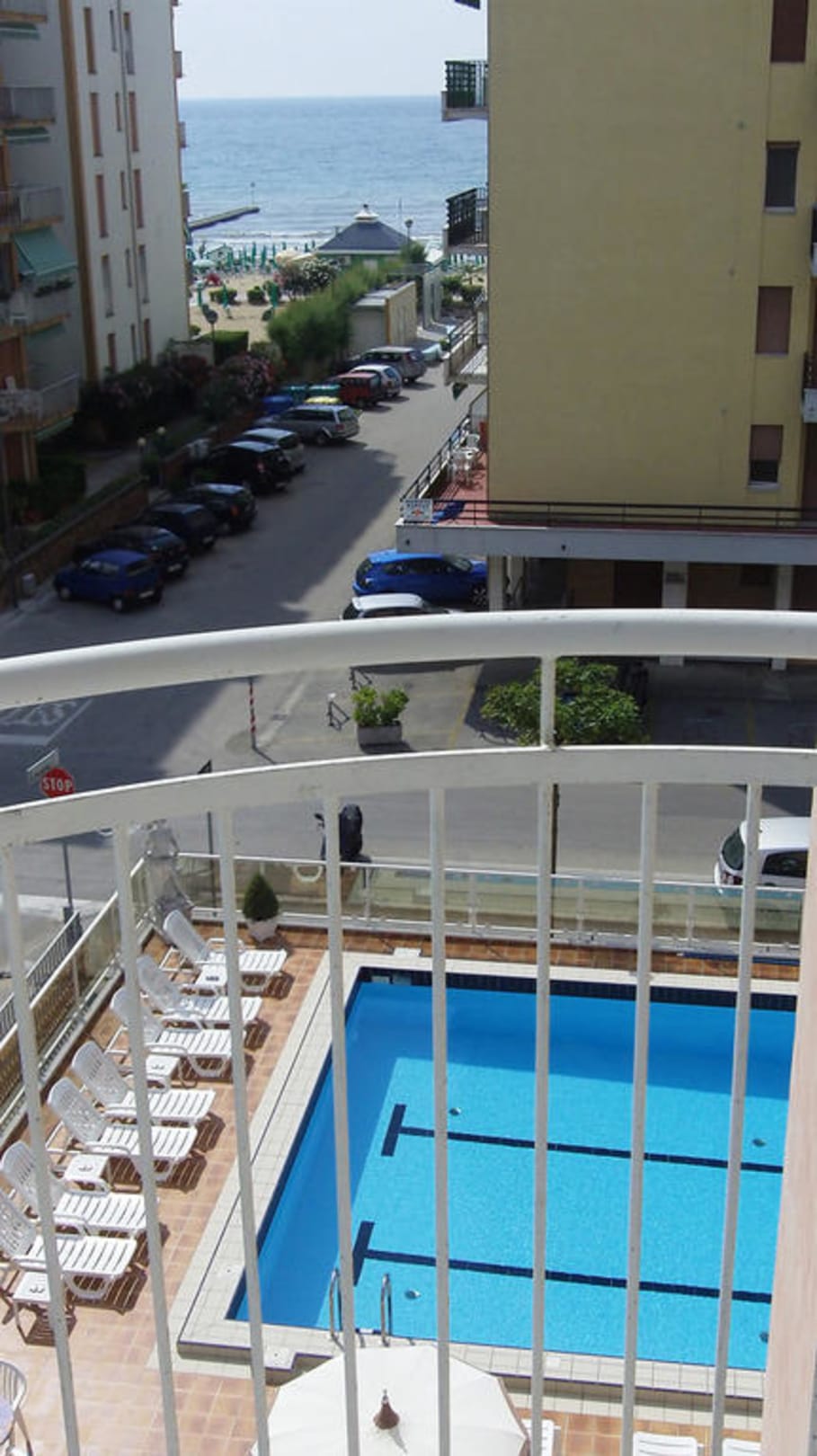 Blick vom Balkon auf den Pool