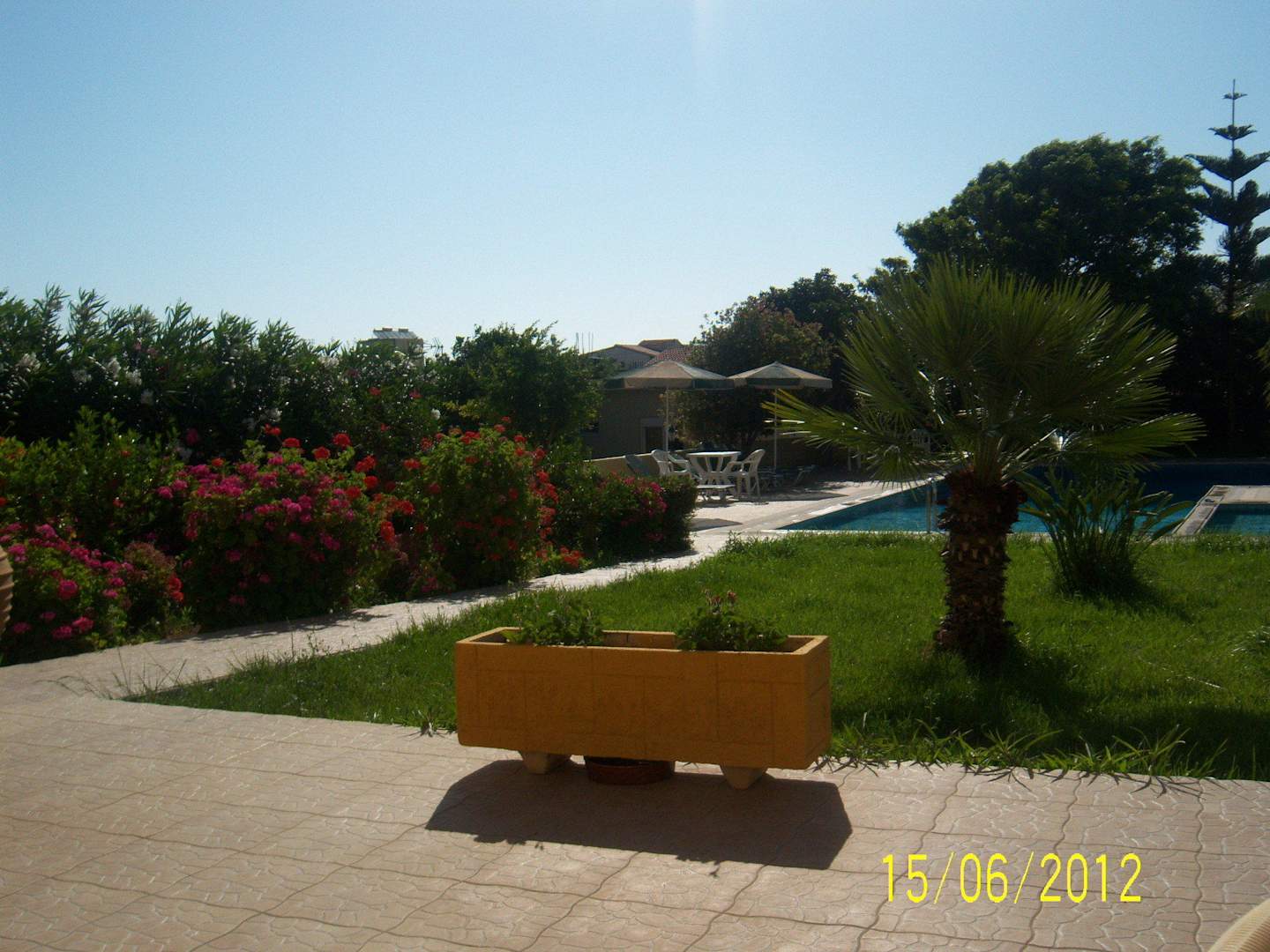 Ogród przy basenie.
