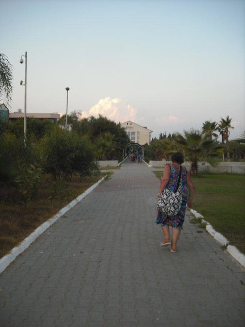 Langer Weg zum Strand, zeigt ungefähr die Hälfte des Weges an.