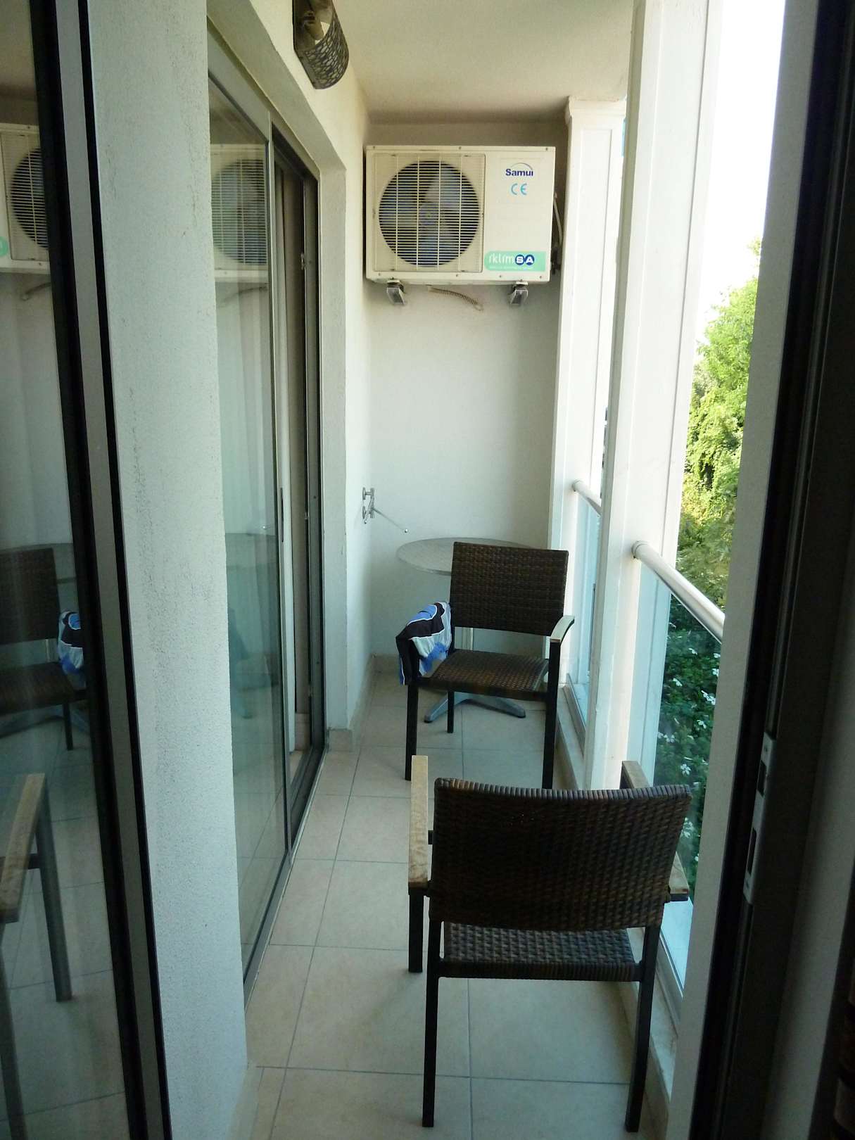 Balkon kann man das nicht nennen, alles sehr schmutzig, wird nicht sauber gemacht und dann noch die laute Klimaanlage, die nur warme Luft verströmt.