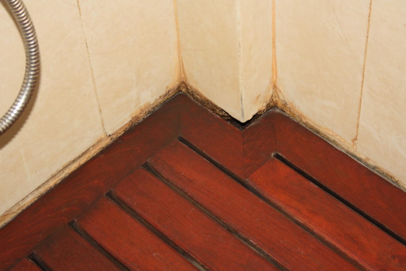 Die Dusche mit Holzboden