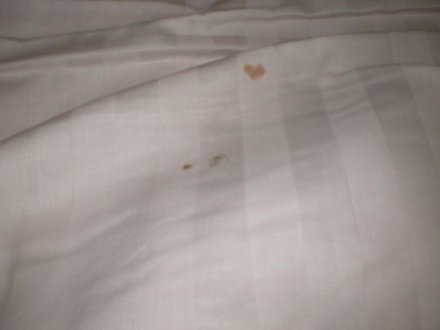 Das Hotel ist total verdreckt und man kann es hier gut erkennen die Bettwäsche sieht aus als wenn jemmand da rein gekotzt hat .