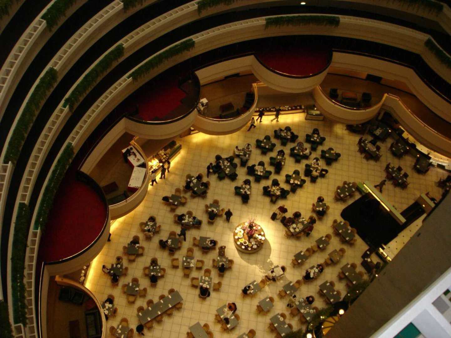 Beeindruckender Blick, 15 Etagen hinunter in den Restaurant-Bereich