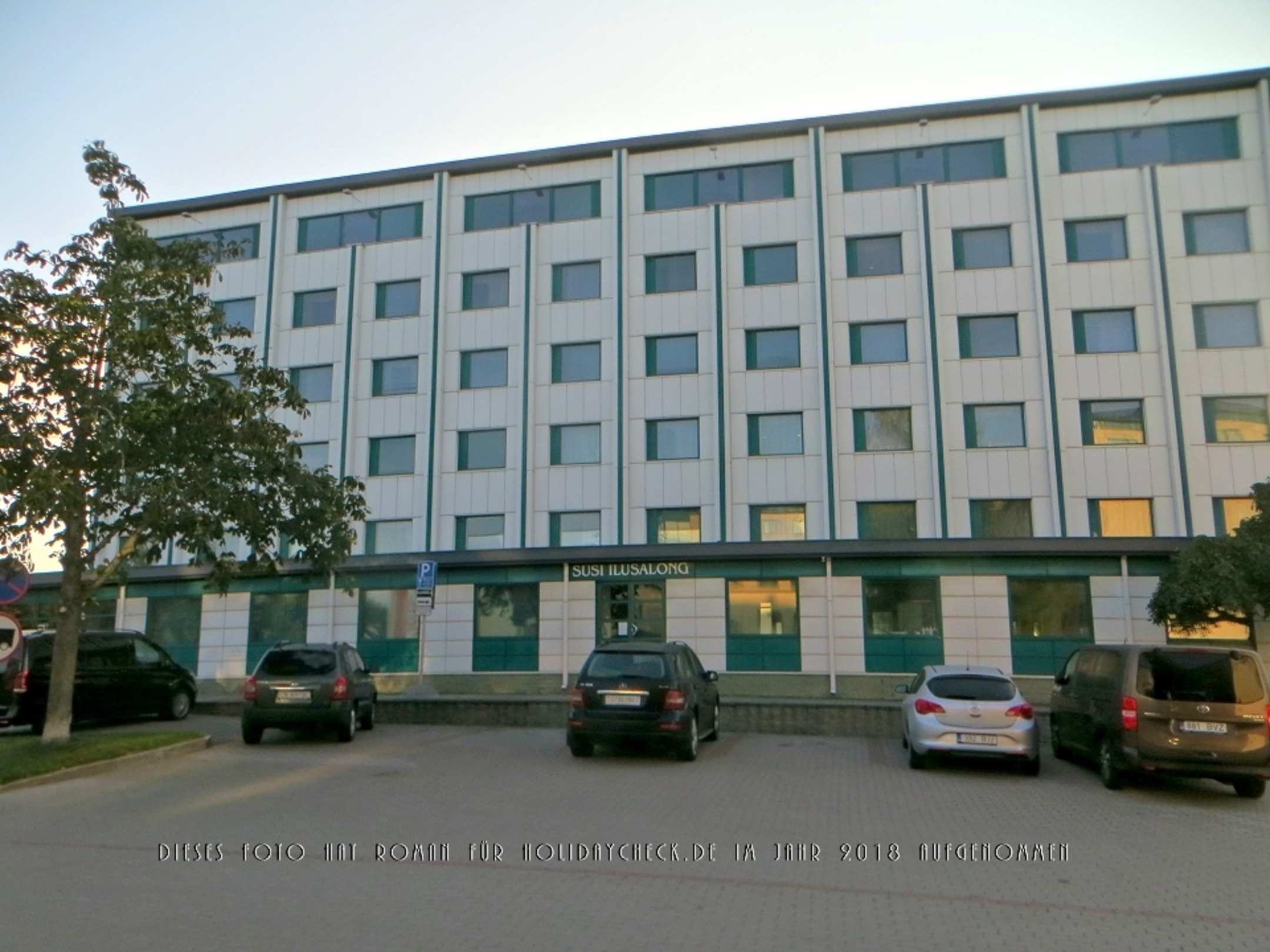 AußenansichtSeitliche Außenansicht des Hestia Hotel Susi, auf dem Weg vom Haupteingang zum großen Parkplatz hinter dem Gebäude.
