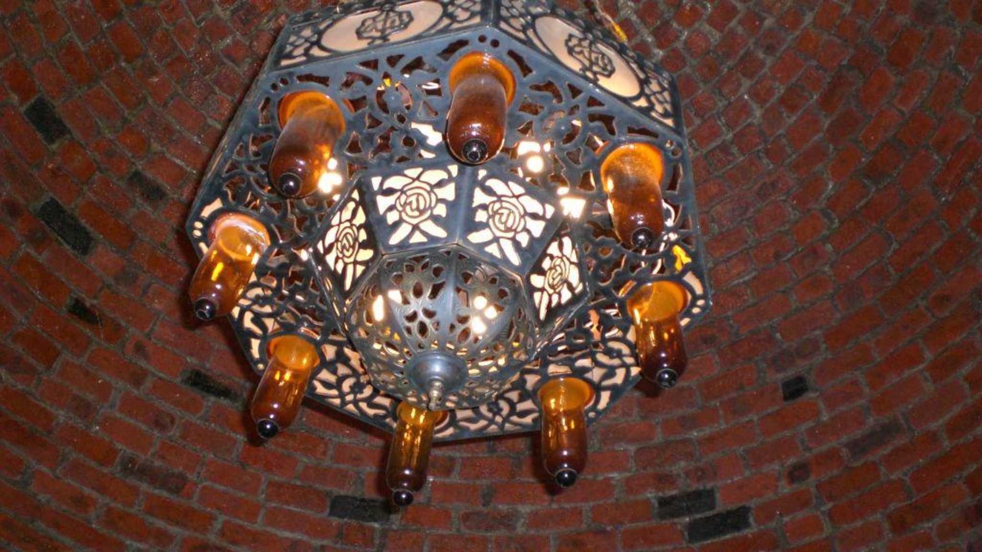 wunderschöne Deckenleuchte mit Mosaikkuppel im Restaurant