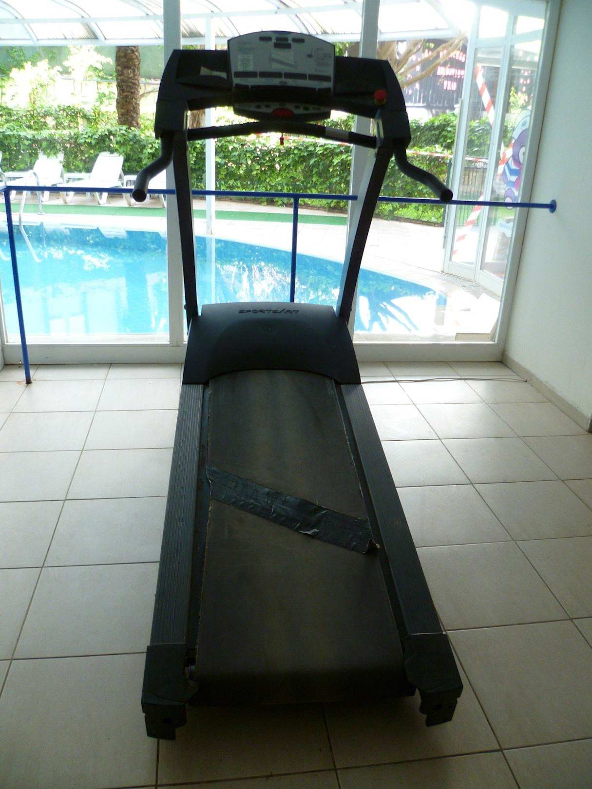 Defektes Laufband im Fitnessraum
