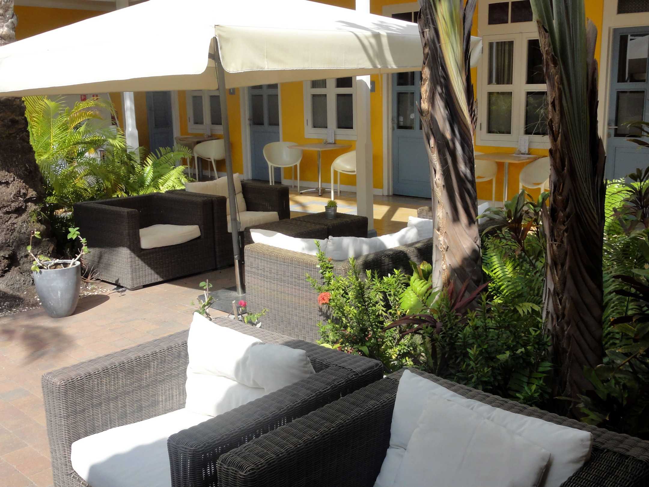 Tropischer Garten im Innenhof des Hotels