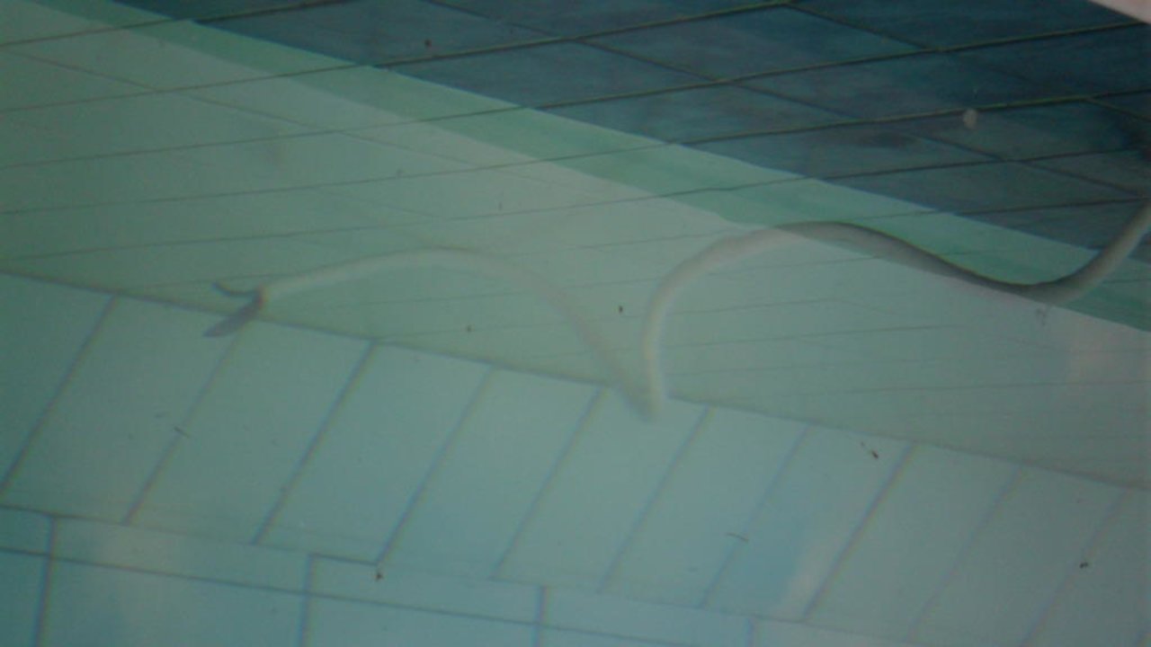 Hier ein blankes Kabel das aus einer Poolleuchte heraushängt. Keiner der Angestellten wusste an welchem Stromkreis das Kabel hängt. Aber es wollte auch keiner irgendetwas tun.