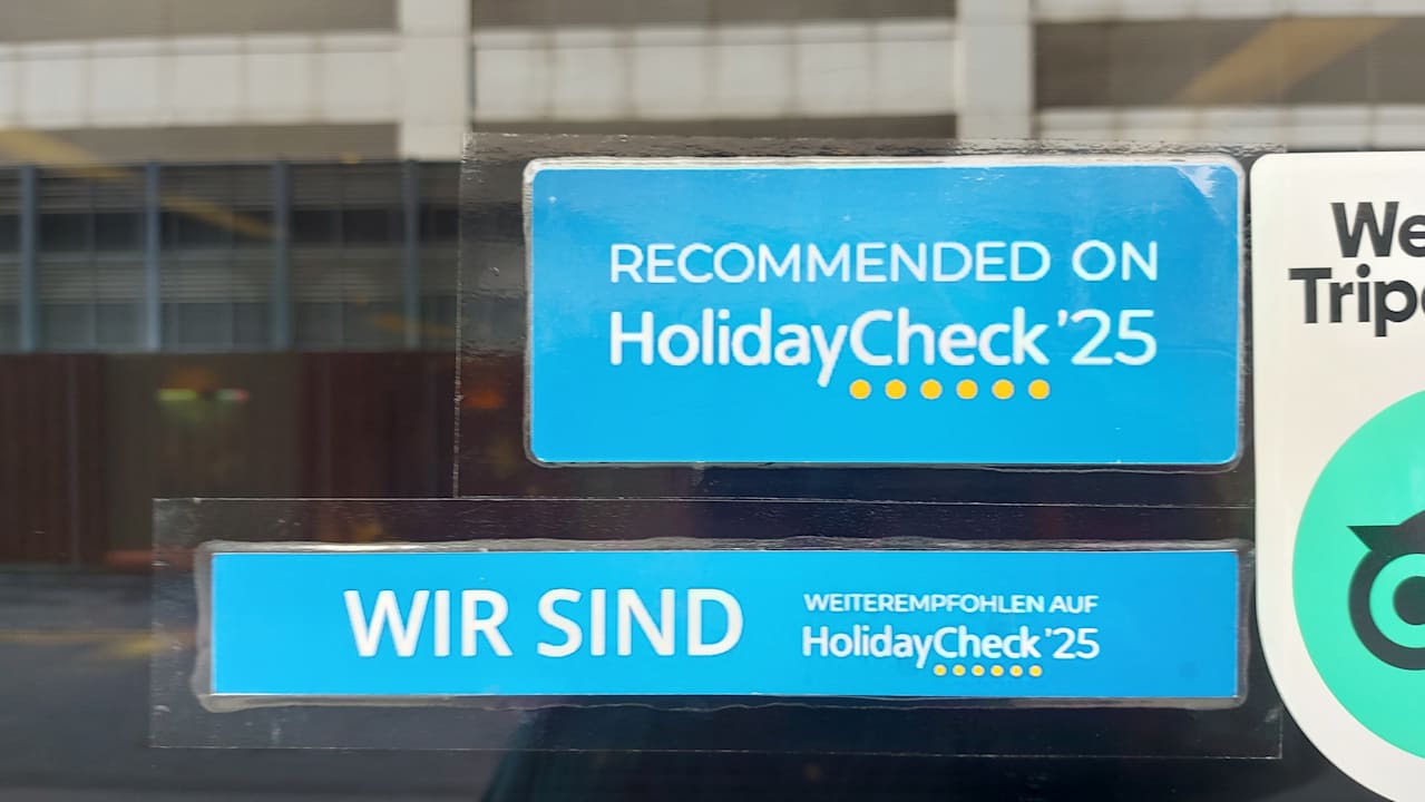 Hinweis auf HolidayCheck an der Eingangstür.