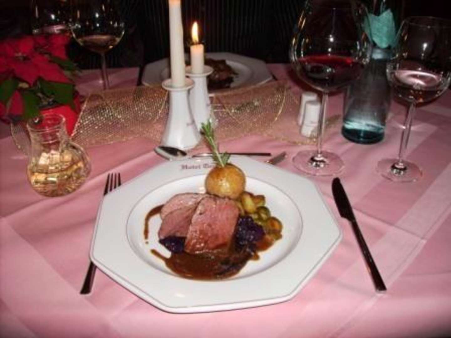 Tranchen vom rosa gebratenen Hirschfleisch Das zerging auf der Zunge!
