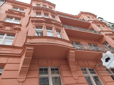 AußenansichtSehr schöne Fassade; die Balkone sind aber wegen des Verkehrslärms kaum nutzbar. Viel besser sind Zimmer nach hinten raus!